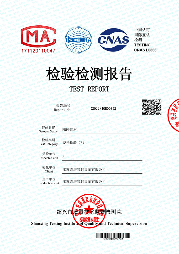 • FRPP管材檢驗報告
